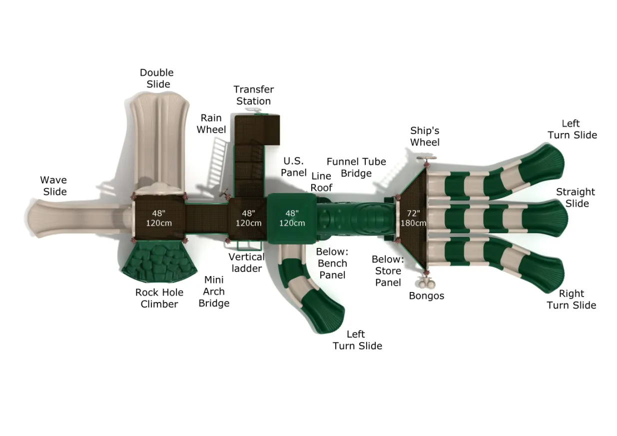 Cactus Corner turns every playground into a mini waterpark experience with seven thrilling slides, giving kids endless opportunities for racing, sliding, and friendly competition. These slides keep playtime fast-paced and exciting while promoting active outdoor fun for all ages.
