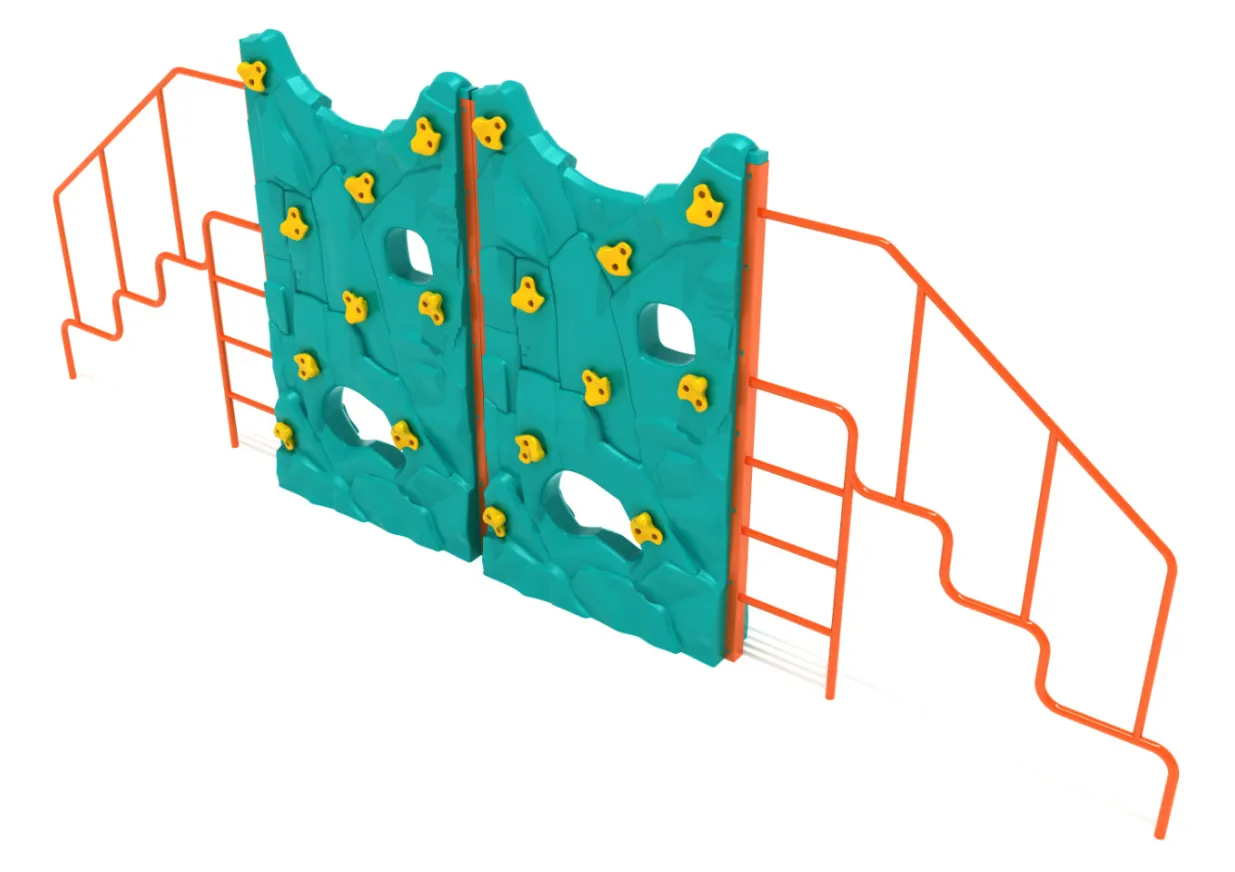 The Craggy Knob outdoor play structure delivers a diverse range of climbing challenges designed to keep kids active, engaged, and entertained. Featuring two large Craggy Climber Straight panels joined together, this playground climber forms a formidable climbing wall that children can scale from left to right, right to left, or climb up and over to reach the opposite side.