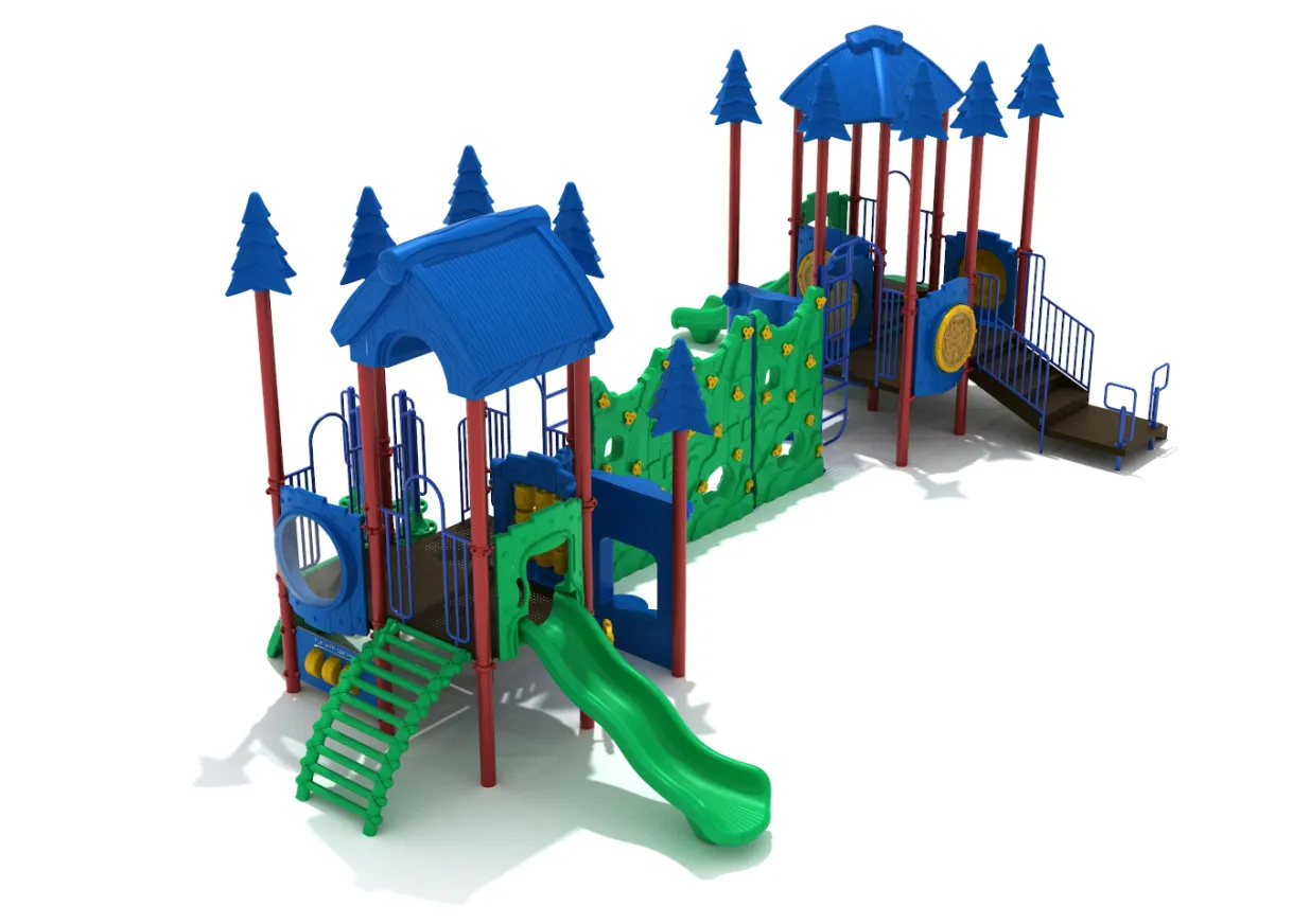 With 10 Pine Tree Toppers towering above the structure, the Finny Fish playground looks like a woodland wonderland, inviting children to roleplay forest adventures while developing social and creative skills.