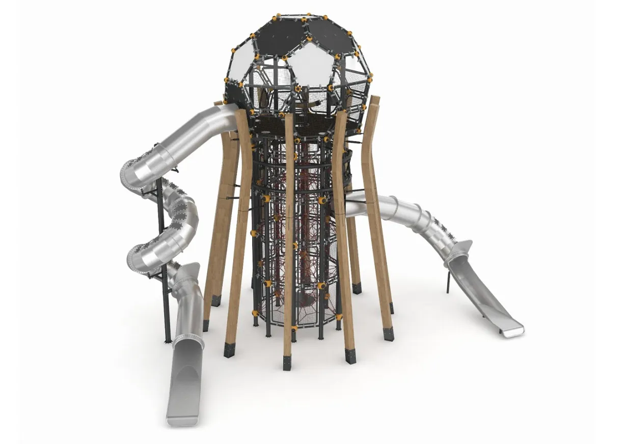 The Goalkeeper’s Gateway Playground Structure captures the energy and excitement of the World Cup, transforming playtime into a celebration of athletic adventure and teamwork. Designed to resemble a towering soccer ball, this dynamic sports-themed playground climber invites children to climb, explore, and celebrate victory in a way that promotes physical fitness, coordination, and imaginative play.