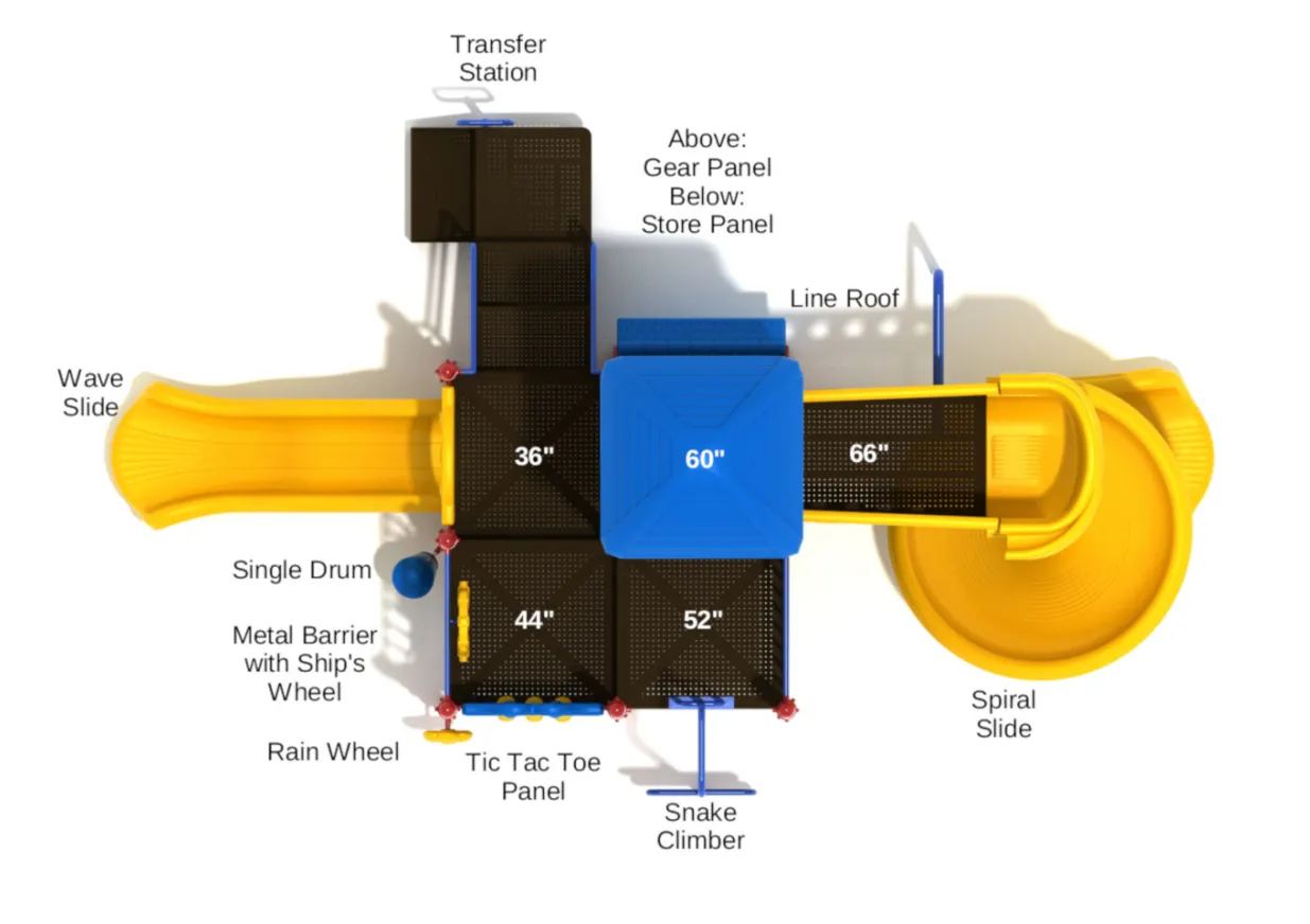 The Line Roof offers valuable shade and weather protection, keeping children comfortable and protecting the play structure from rain and sun damage. Built from commercial-grade, weather-resistant materials, this nautical-themed playground is engineered for long-lasting performance, safety, and high play value.