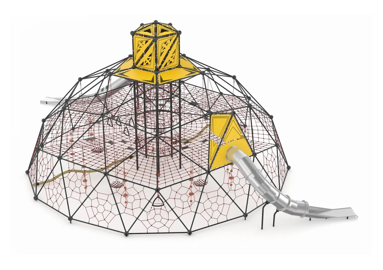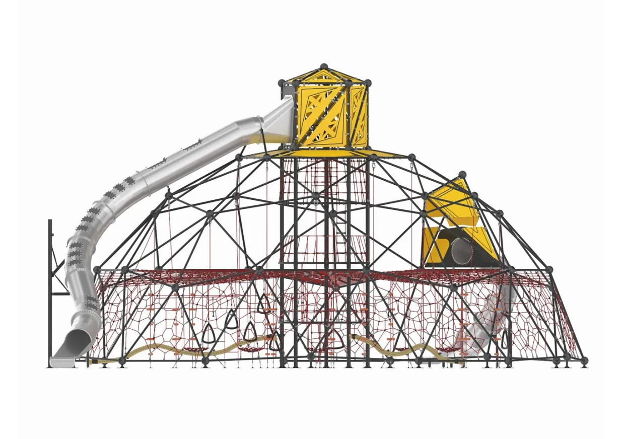 Constructed from powder-coated steel and nylon-wrapped steel ropes, the Looming Labyrinth Playground System is built for long-term durability, safety, and weather resistance—making it a perfect choice for schools, parks, and community recreation spaces.